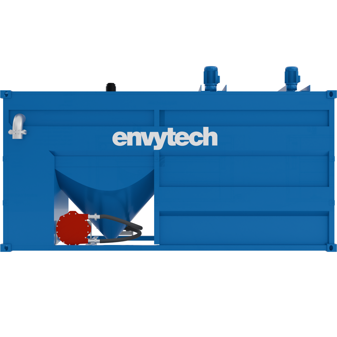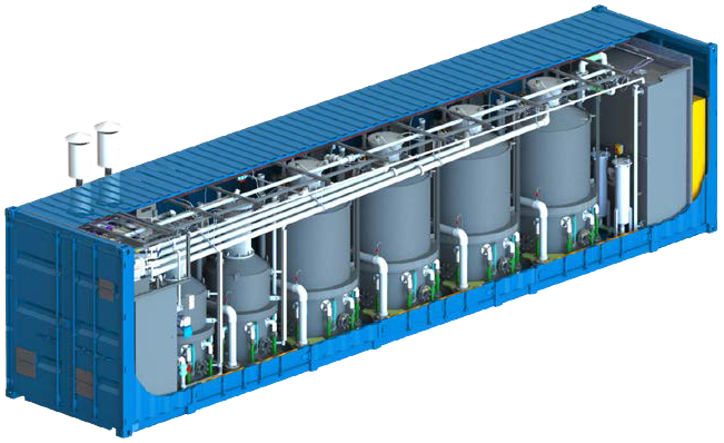 Helautomatiserad vattenreningsenhet med kapacitet på upp till 20 m³/h. Enheten kombinerar kemisk fällning, pH-justering och partikelavskiljning i en integrerad lösning.